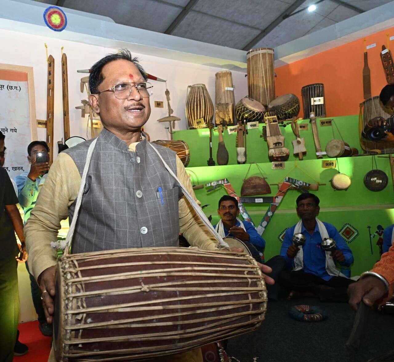 *मांदर बजाते हुए कलाकारों के साथ थिरके मुख्यमंत्री श्री साय*