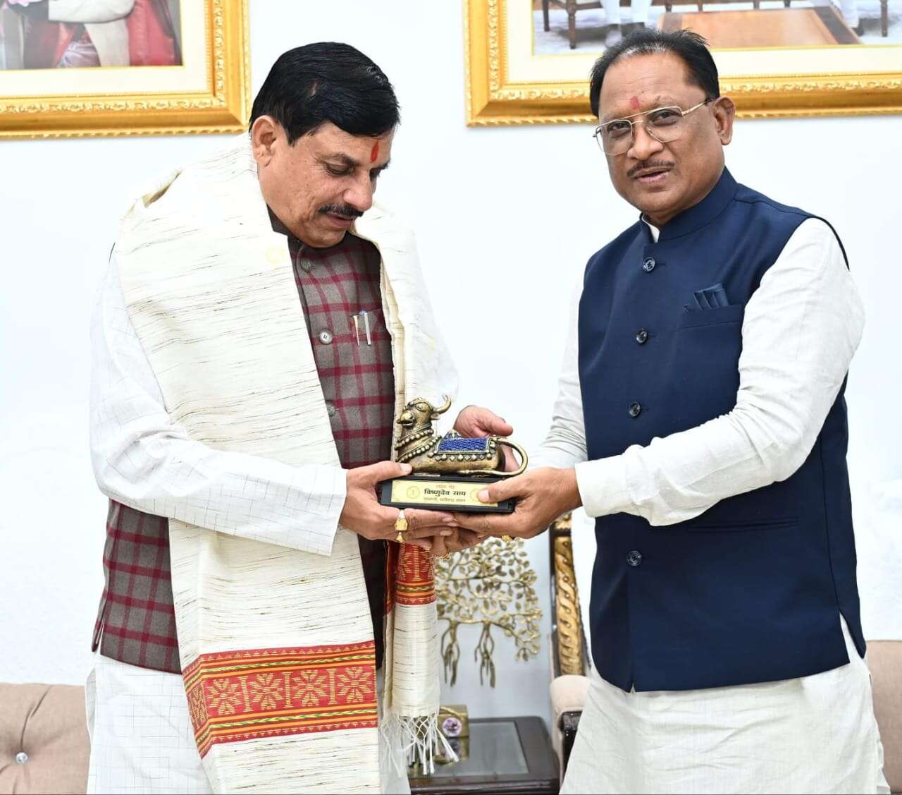 *मुख्यमंत्री श्री विष्णु देव साय ने मध्यप्रदेश के मुख्यमंत्री डॉ. मोहन यादव का अपने निवास में आत्मीय स्वागत किया*