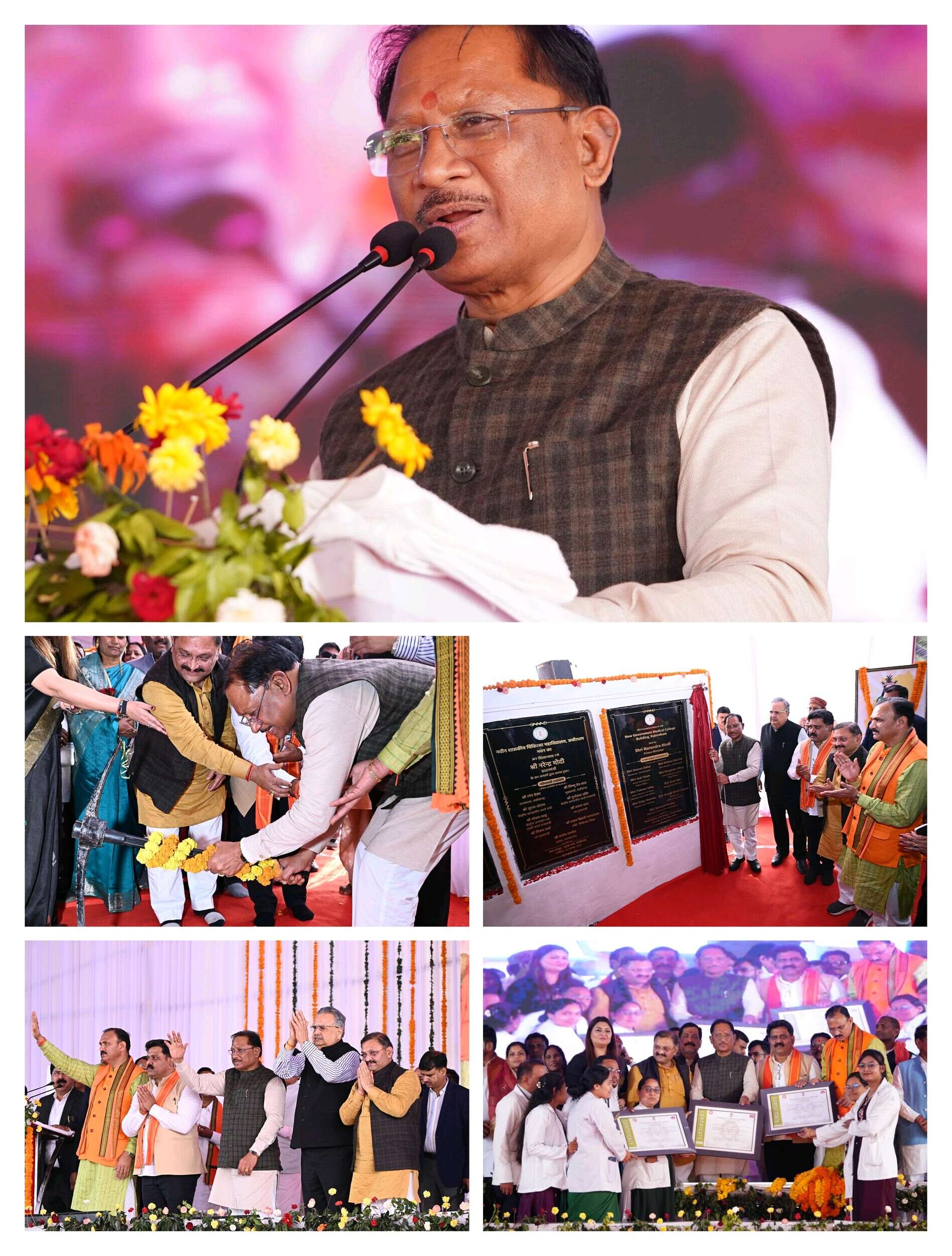 मुख्यमंत्री श्री विष्णुदेव साय ने कबीरधाम जिले में नए शासकीय मेडिकल कॉलेज भवन की शिला-स्थापना को ऐतिहासिक बताते हुए जिलेवासियों को बधाई दी। मुख्यमंत्री श्री साय ने कहा कि बीते 25 वर्षों में छत्तीसगढ़ ने विकास के नए आयाम स्थापित किए हैं। राज्य गठन के बाद सड़क, बिजली, पानी और शिक्षा जैसी मूलभूत व्यवस्थाओं को सुदृढ़ किया गया।